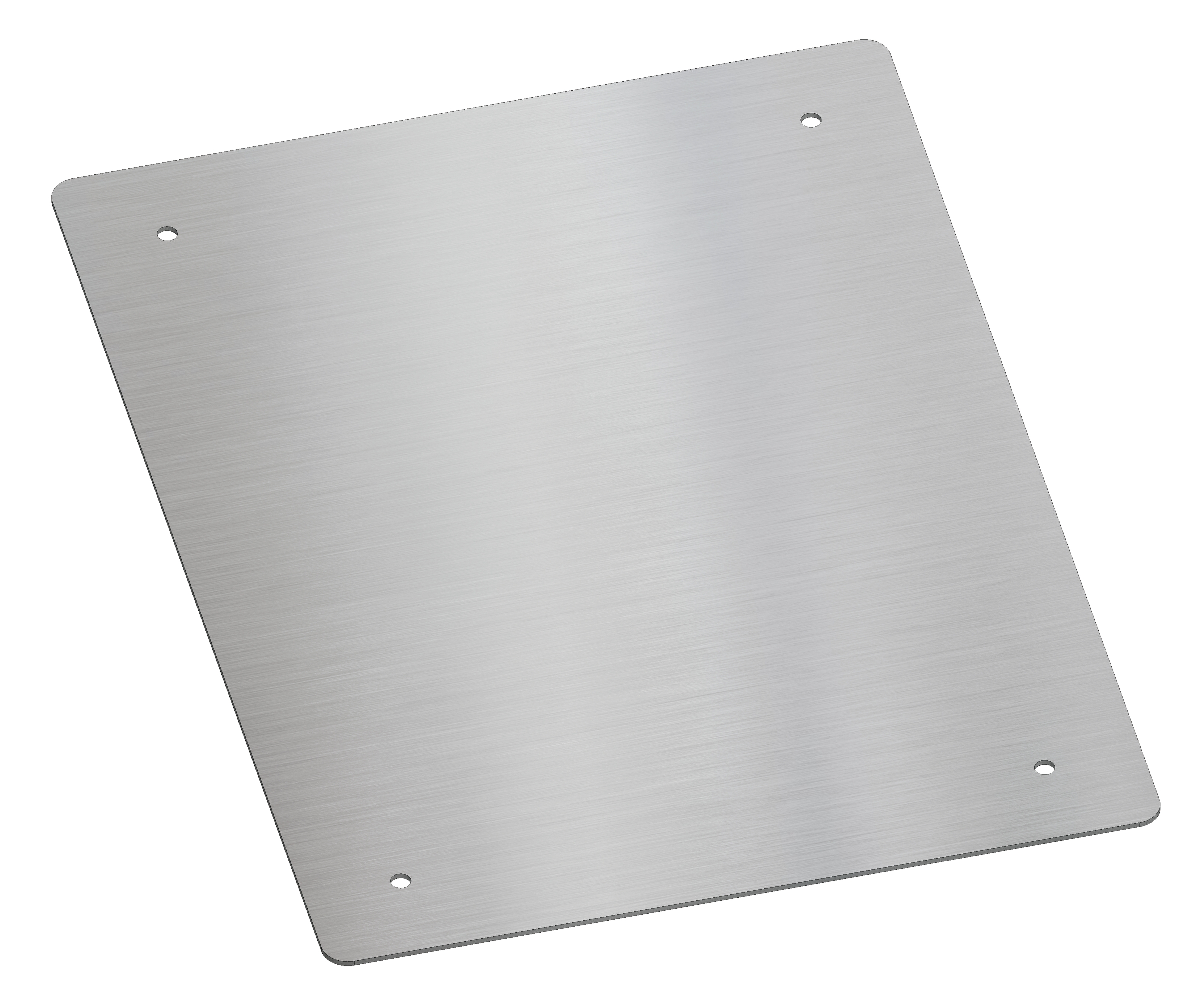 Designová deska z ušlechtilé oceli V2A, 1 kus, pro zadní zakrytí skříní GEOS 3040 při používání sady stožárových svorek GEOS MSSRozměry: 394 x 294 x 3 mm