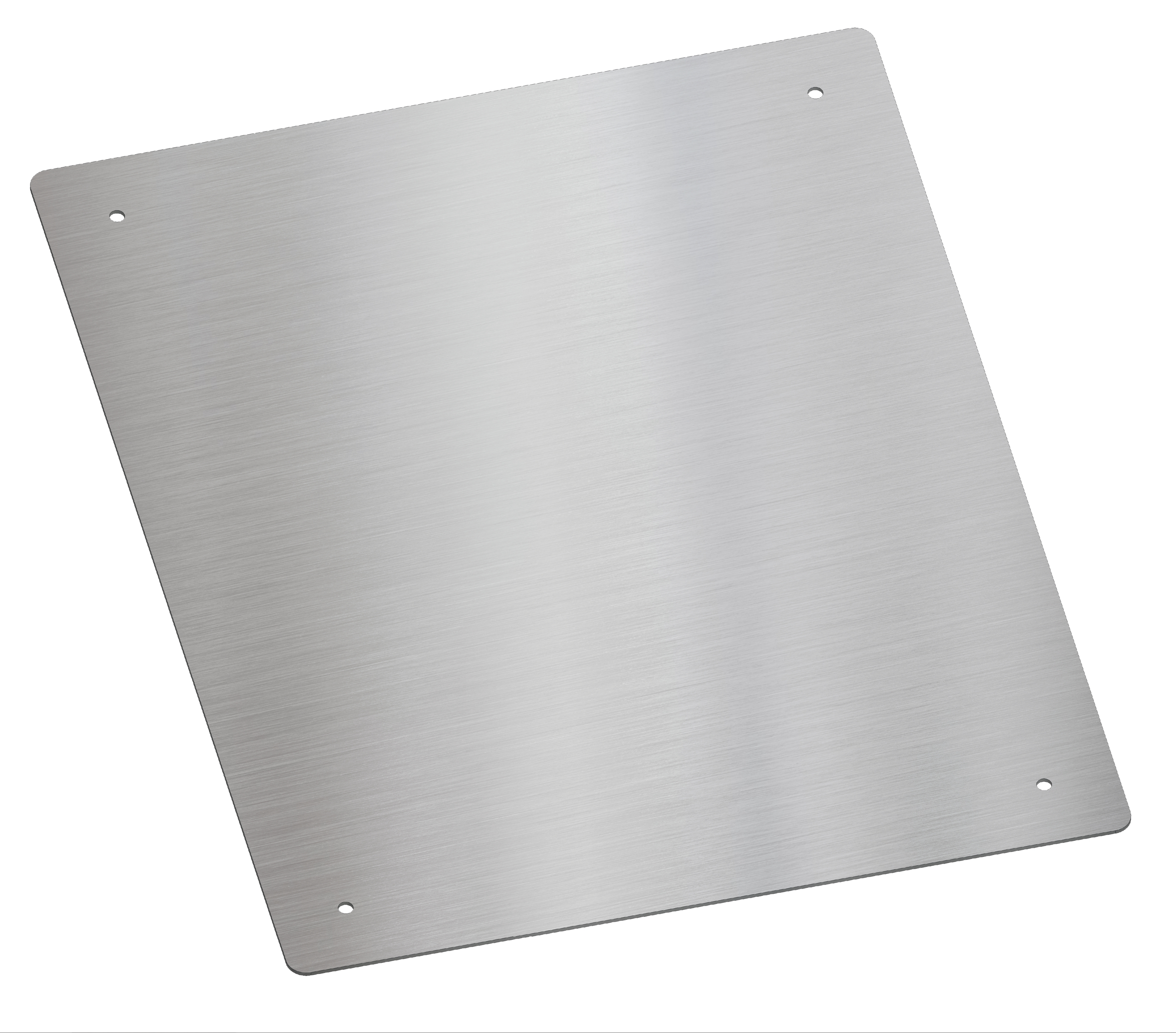 Designová deska z ušlechtilé oceli V2A, 1 kus, pro zadní zakrytí skříní GEOS 4050 při používání sady stožárových svorek GEOS MSSRozměry: 494 x 394 x 3 mm