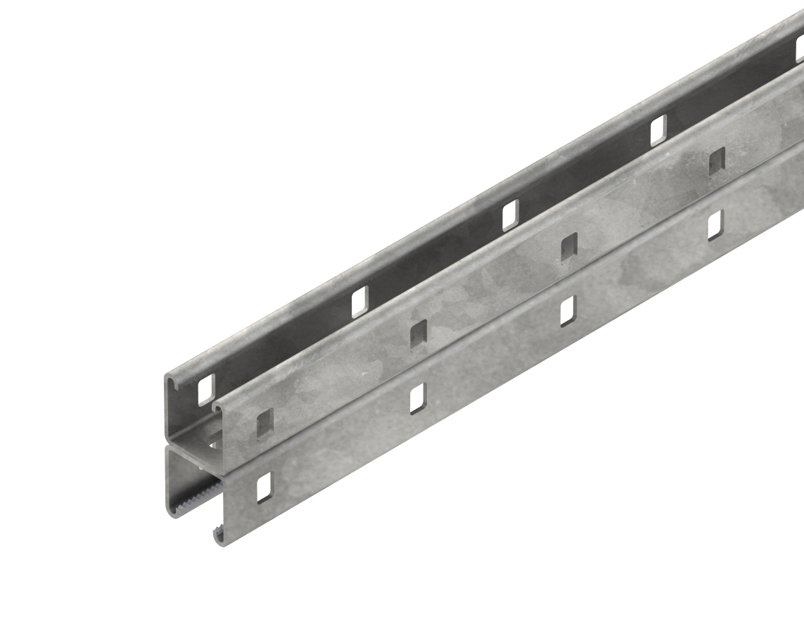 Kotevní lišta, dvojitá, C-profil s drážkou 22 mm, 41x41x3000 mm, t=2,5 mm, děrovaná