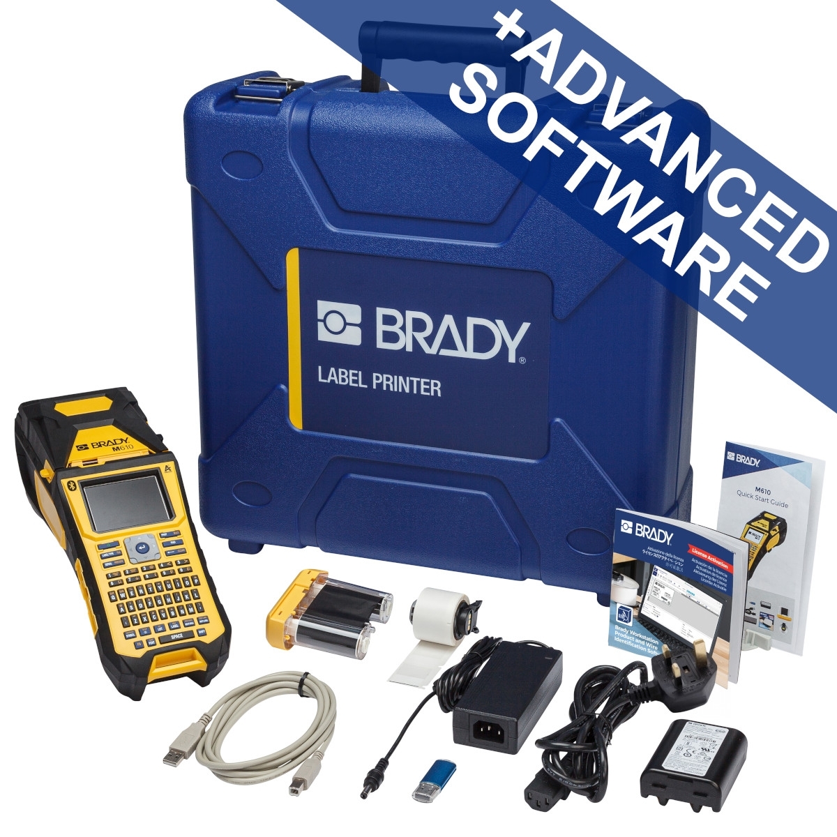This printer ships in a hard case holding a USB cable, a quick start guide, a Li-ION Rechargeable Battery, an AC Adapter, a product USB, a license for Brady Workstation Software suites, a roll of M6-11-427 and an M61-R4310 ribbon.