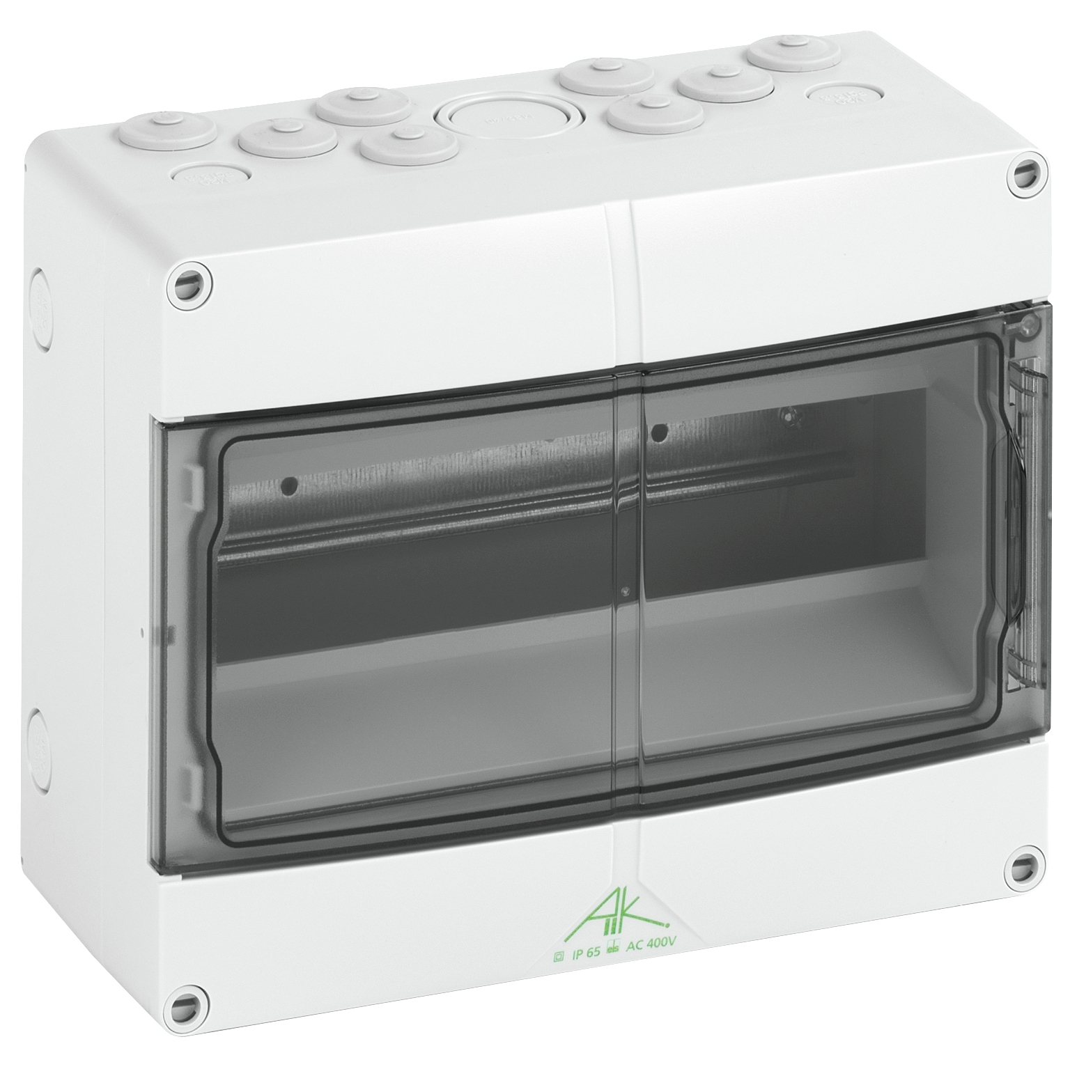 Malý rozvaděč, šedá, IP65, 12 Dílčí jednotky, rázová odolnost IK07, třída ochrany II, 400V AC AKII 12