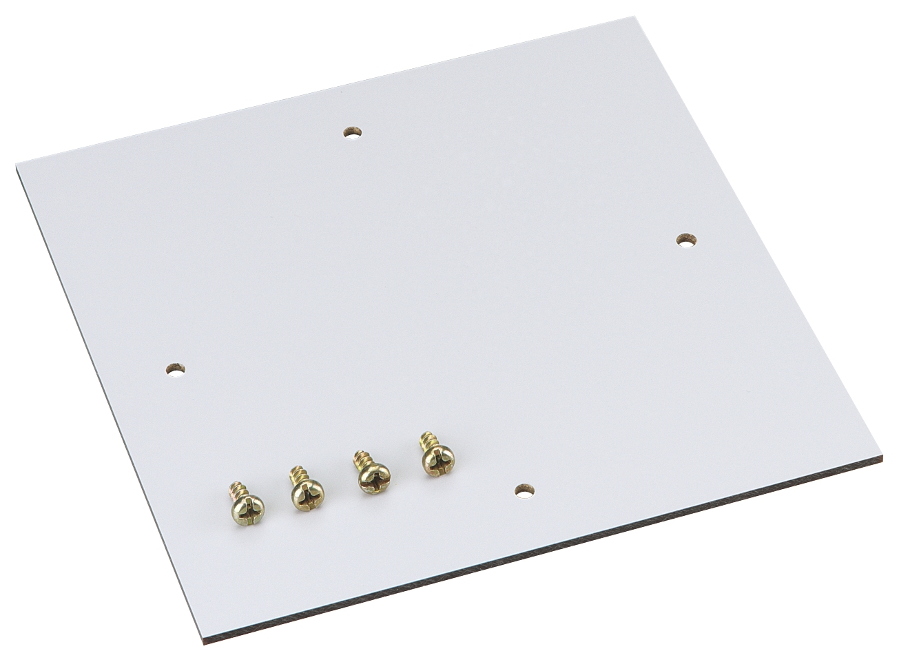 Montážní deska z izolačního materiálu kašírovaného melaminem, tloušťka 2,5 mm2 vč. upevňovacích šroubů, šedá, TK PS / TK PC 1818Rozměry: 150 x 150 x 2,5 mm