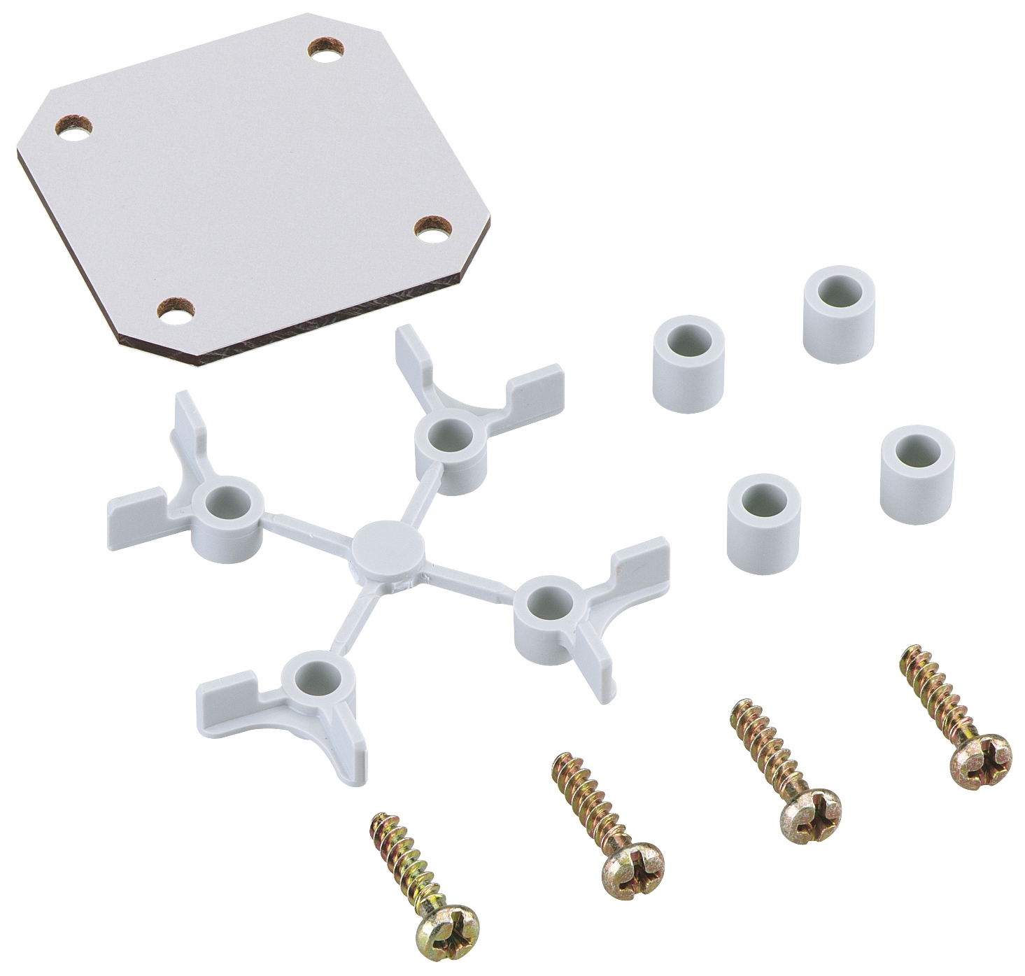 Montážní deska z izolačního materiálu kašírovaného melaminem, tloušťka 2,5 mm2 vč. upevňovacích šroubů a distančních držáků, šedá, TK PS / TK PC 77Rozměry: 45 x 45 x 2,5 mm