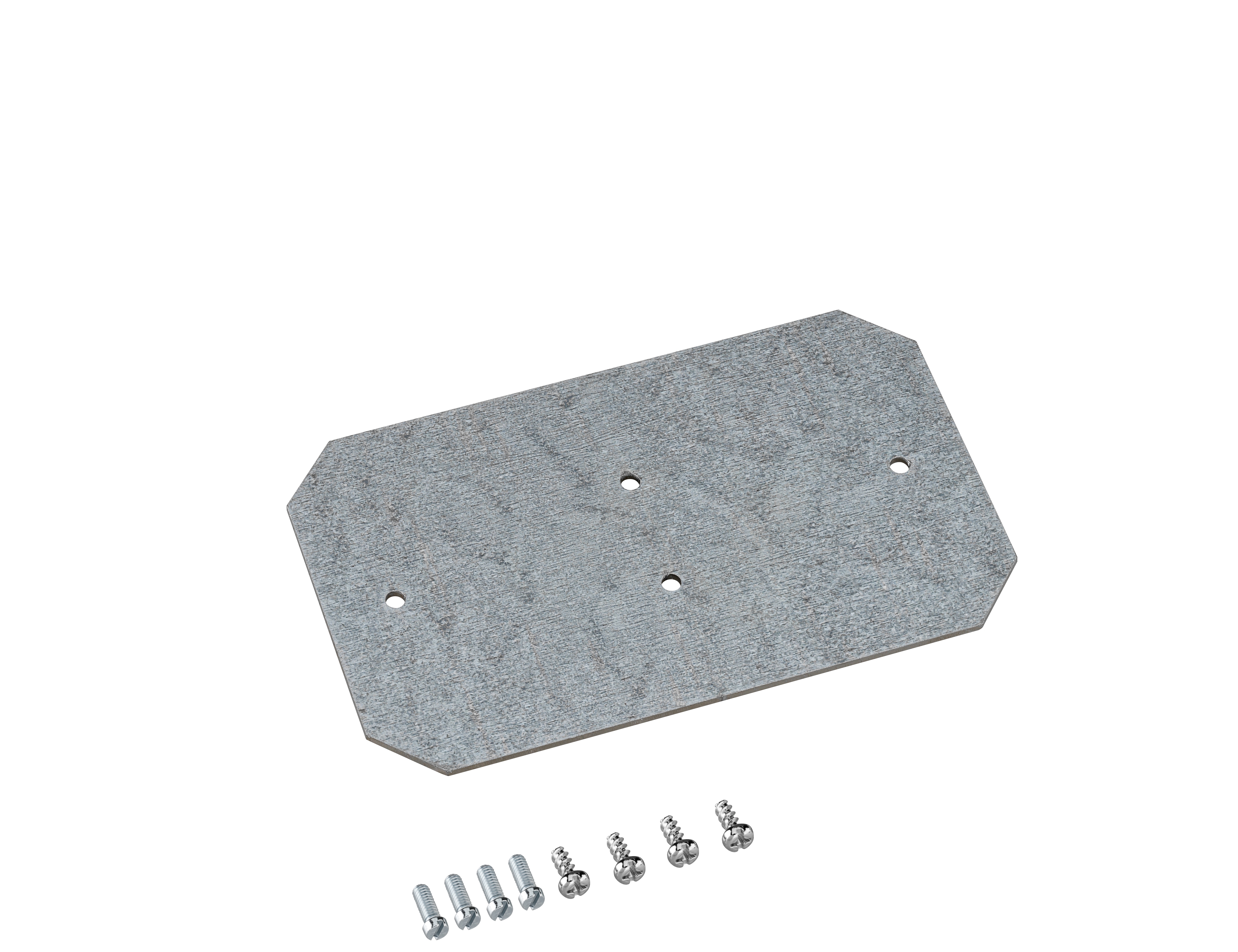 Montážní deska z pozinkovaného ocelového plechu, tloušťka 2 mm2 vč. upevňovacích šroubů, TK PS / TK PC 1811Rozměry: 90 x 150 x 2 mm