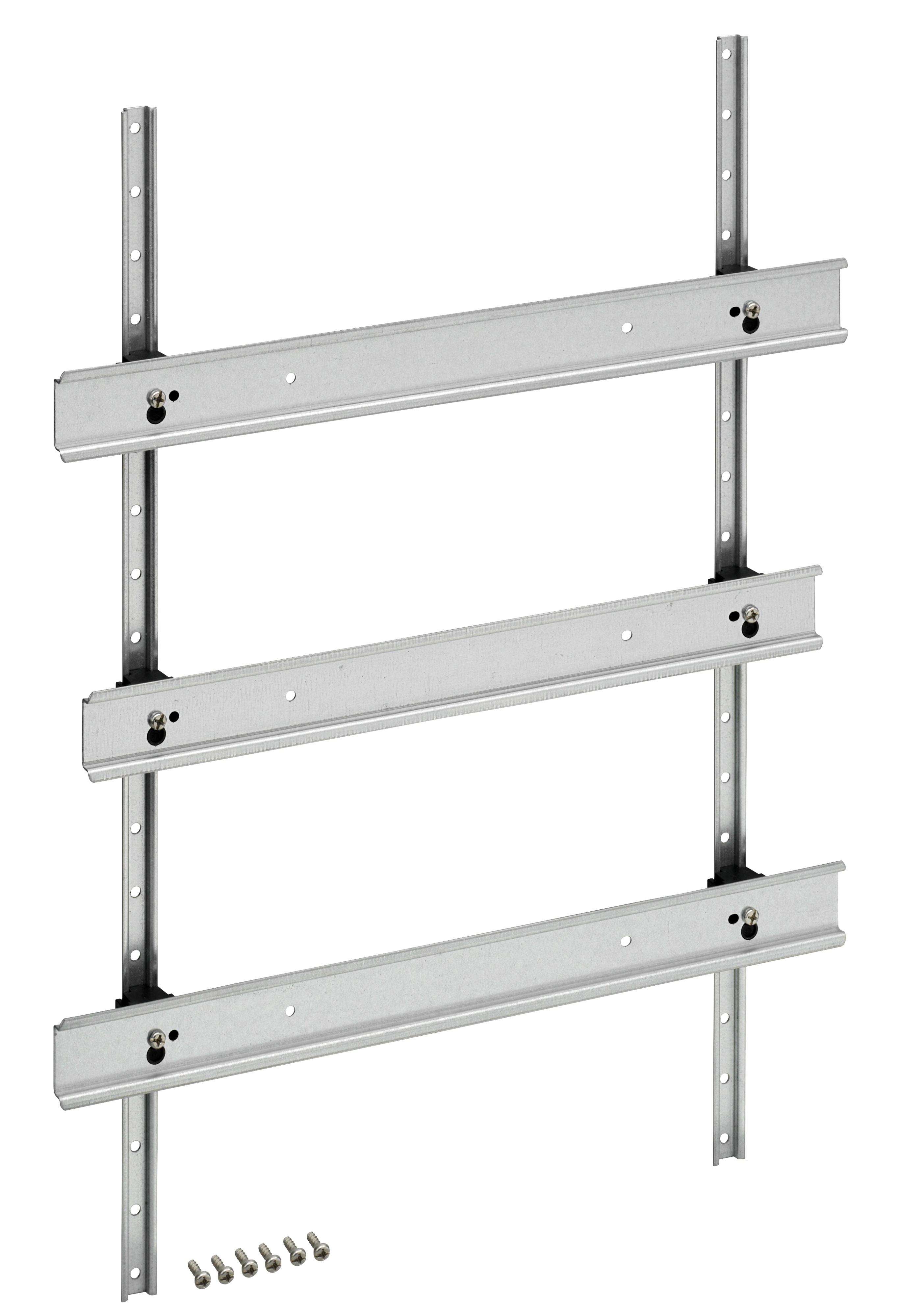 Nosný stojan s lištami, šířka 35 mm2 ve výškách 7,5 a 15 mm2 včet. upevňovacích šroubů k montáži na dno. Volitelně možná montáž pomocí montážního držáku v různých výškách, bez ochrany proti dotyku, 3-řadý, 18 modulů, lišty 35 x 7,5 mm2 k montáži do GEOS-L/-S 4050Rozměry: 350 x 466 x 35 mm