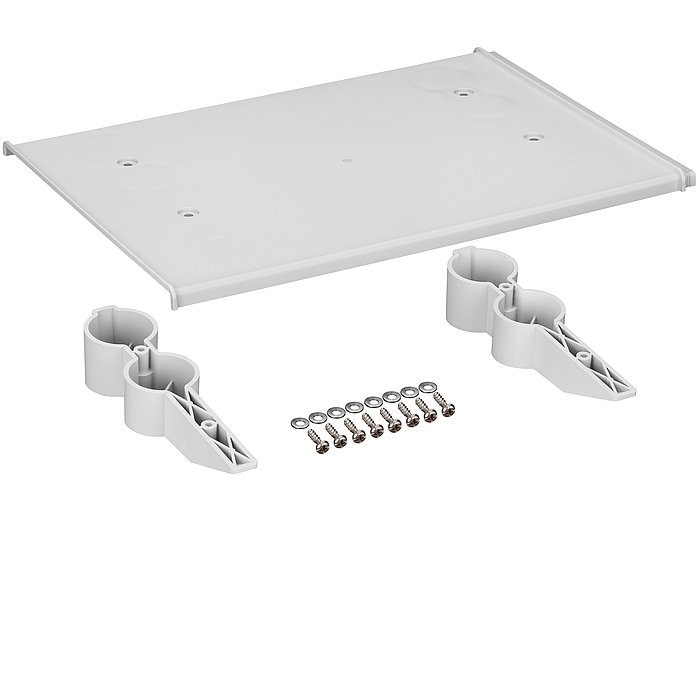 ochranná stříška proti počasí pro skříně GTi, modulárně kombinovatelné, pro snížení zatížení skříní deštěm, sněhem a podobnými vlivy životního prostředí, 320mm2 k dodatečnému vybavení na stávající přírubě GFL, včetně vrtací šablonyRozměry: 325 x 231 x 45 mm