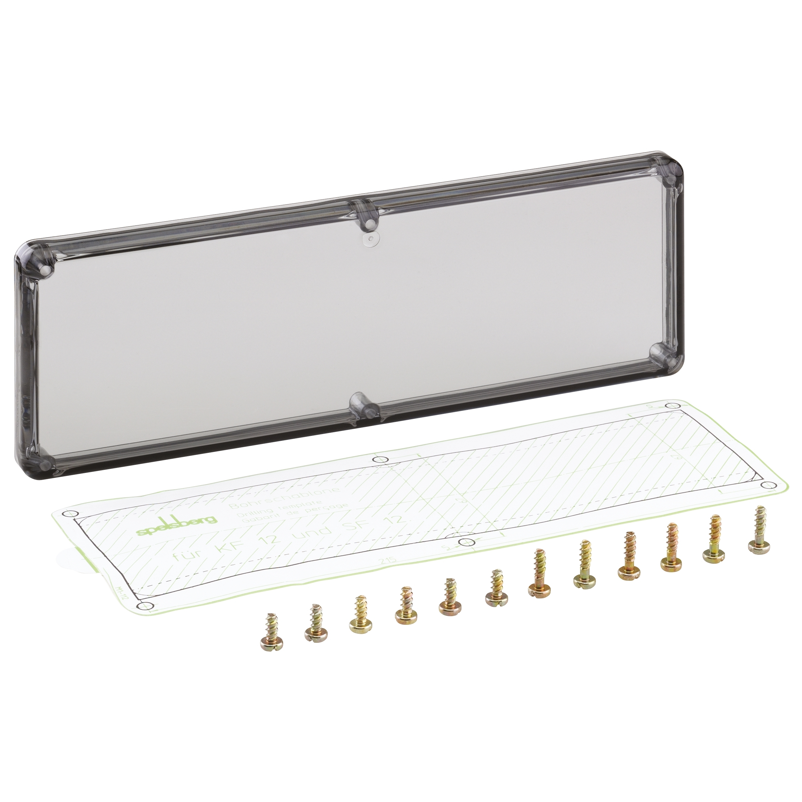 Okénko, pro montáž na víka skříní, průhledné, včetně vrtací šablony a upevňovacích šroubů, Rozměry: 228 x 80 x 13 mm