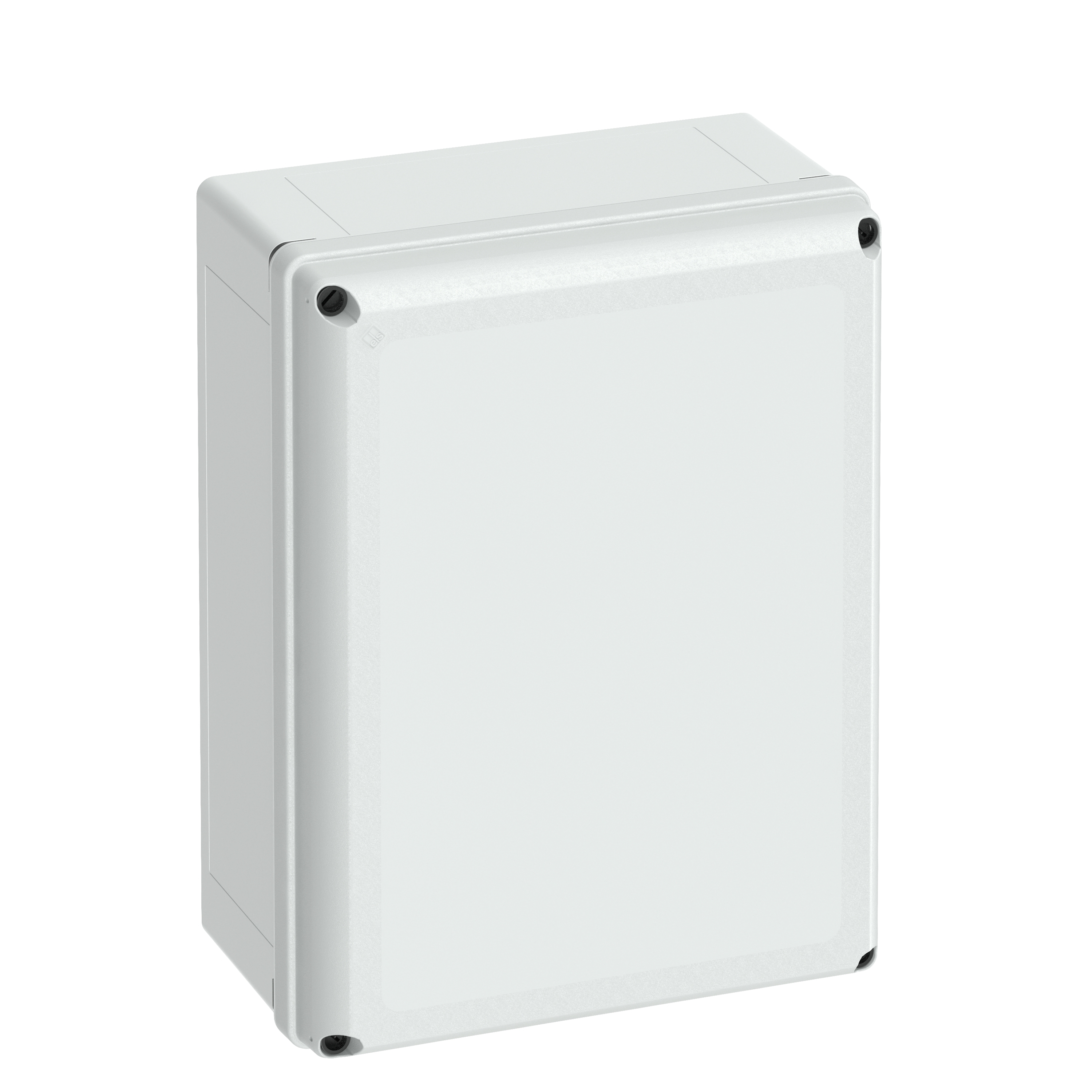 Prázdná skříň, vhodné pro instalaci v zátěžovém prostředí a v nechráněném venkovním prostředí, Krabice: polykarbonát vyztužený skleněnými vlákny, šedá, podobně RAL 7035, Víko: Polykarbonát, s šedým víkemRozměry: 300 x 400 x 180 mm