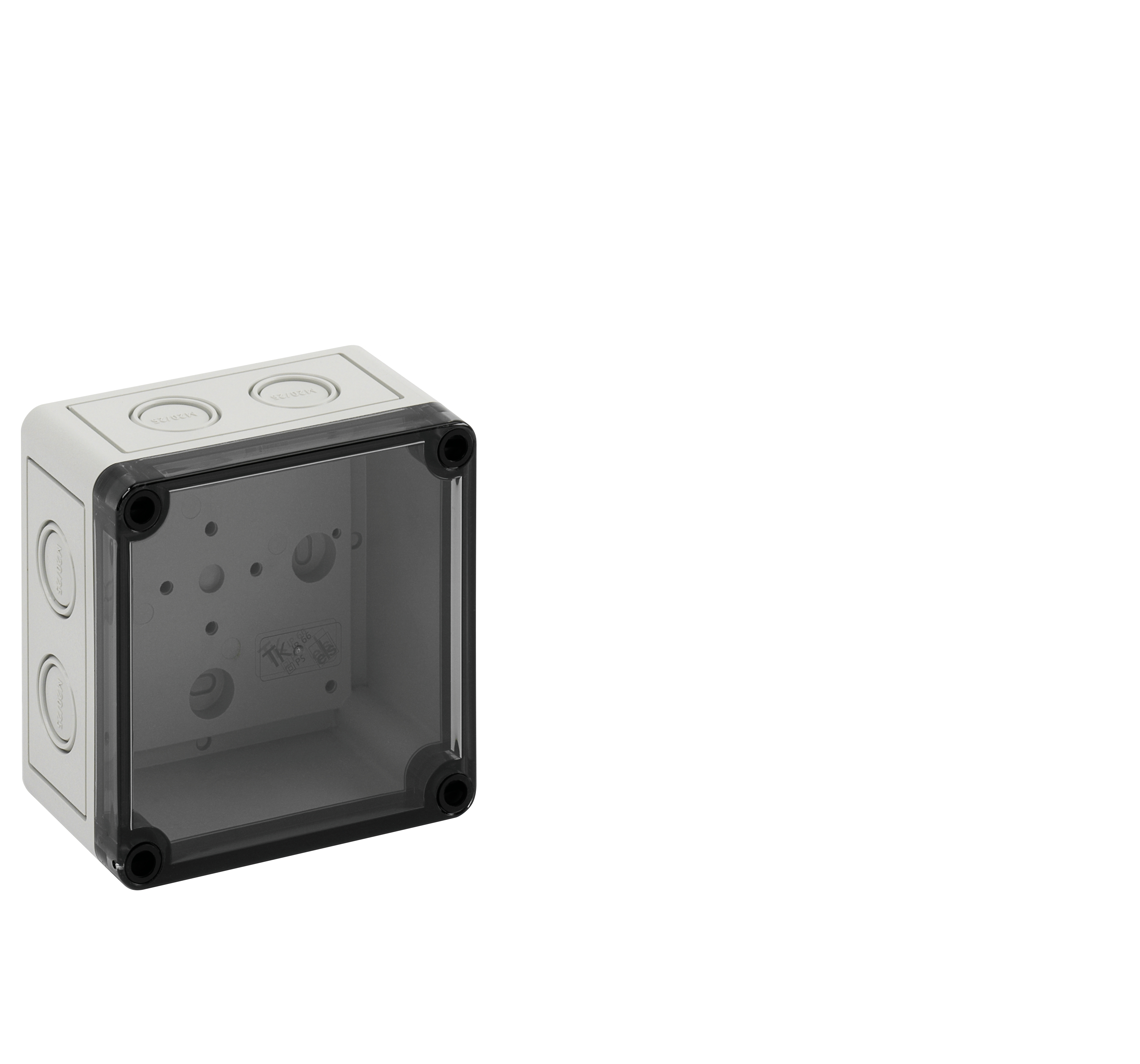 Prázdná skříň, se stupněm krytí IP66, polystyren, Ui=690V AC, Ui=1000V DC, Vnitřní místa pro připevnění, pro standardní instalace ve vnitřním prostoru, Krabice: polystyren, šedá, Víko: polykarbonát, transparentní, Vyrážecí membrány, M20/M25, (7 vývodek z boku)Rozměry: 110 x 110 x 66 mm