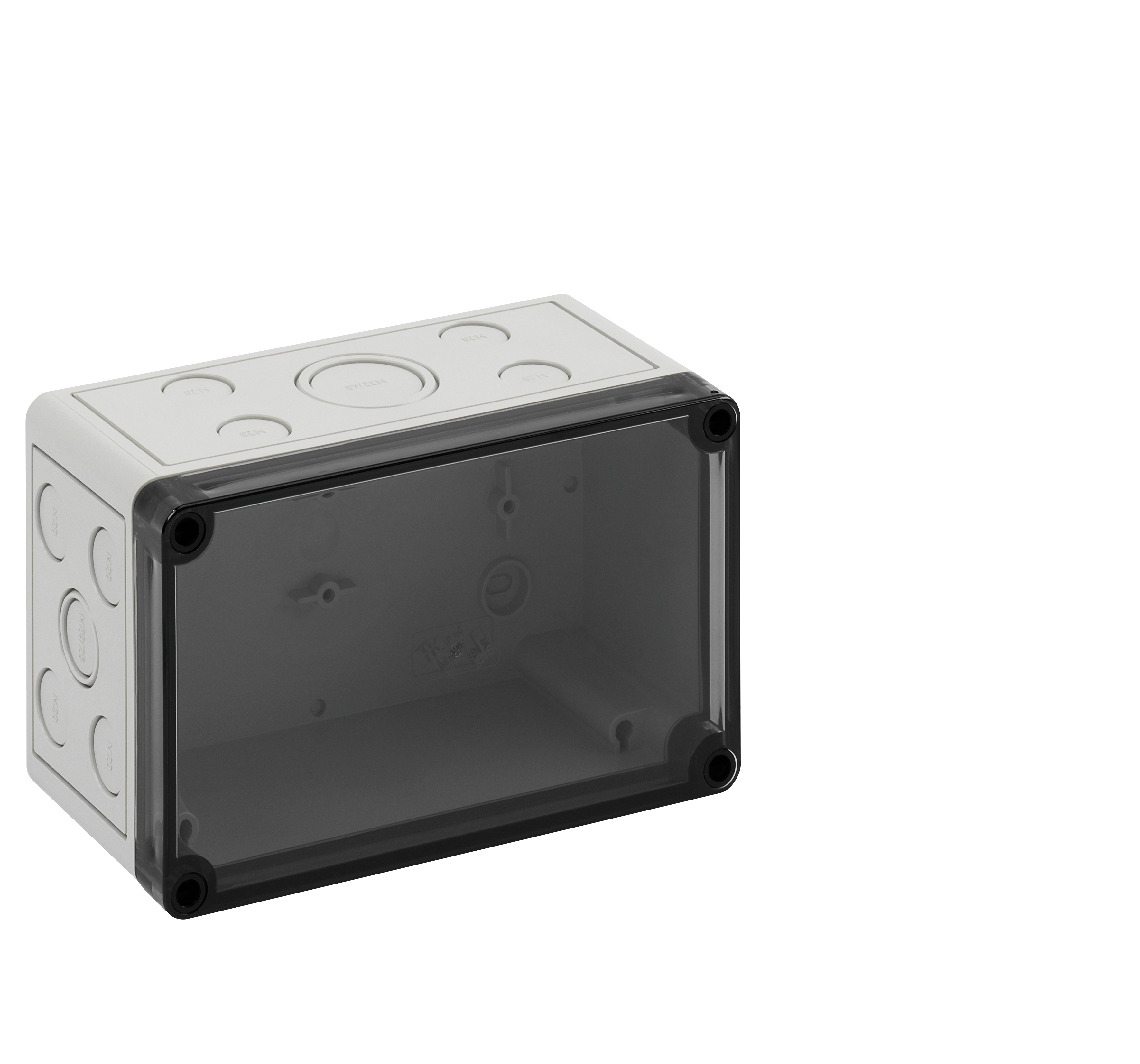 Prázdná skříň, se stupněm krytí IP66, polystyren, Ui=690V AC, Ui=1000V DC, Vnitřní místa pro připevnění, pro standardní instalace ve vnitřním prostoru, Krabice: polystyren, šedá, Víko: polykarbonát, transparentní, Vyrážecí membrány, M20/M25/M32/M40, (20 vývodek z boku)Rozměry: 180 x 110 x 90 mm