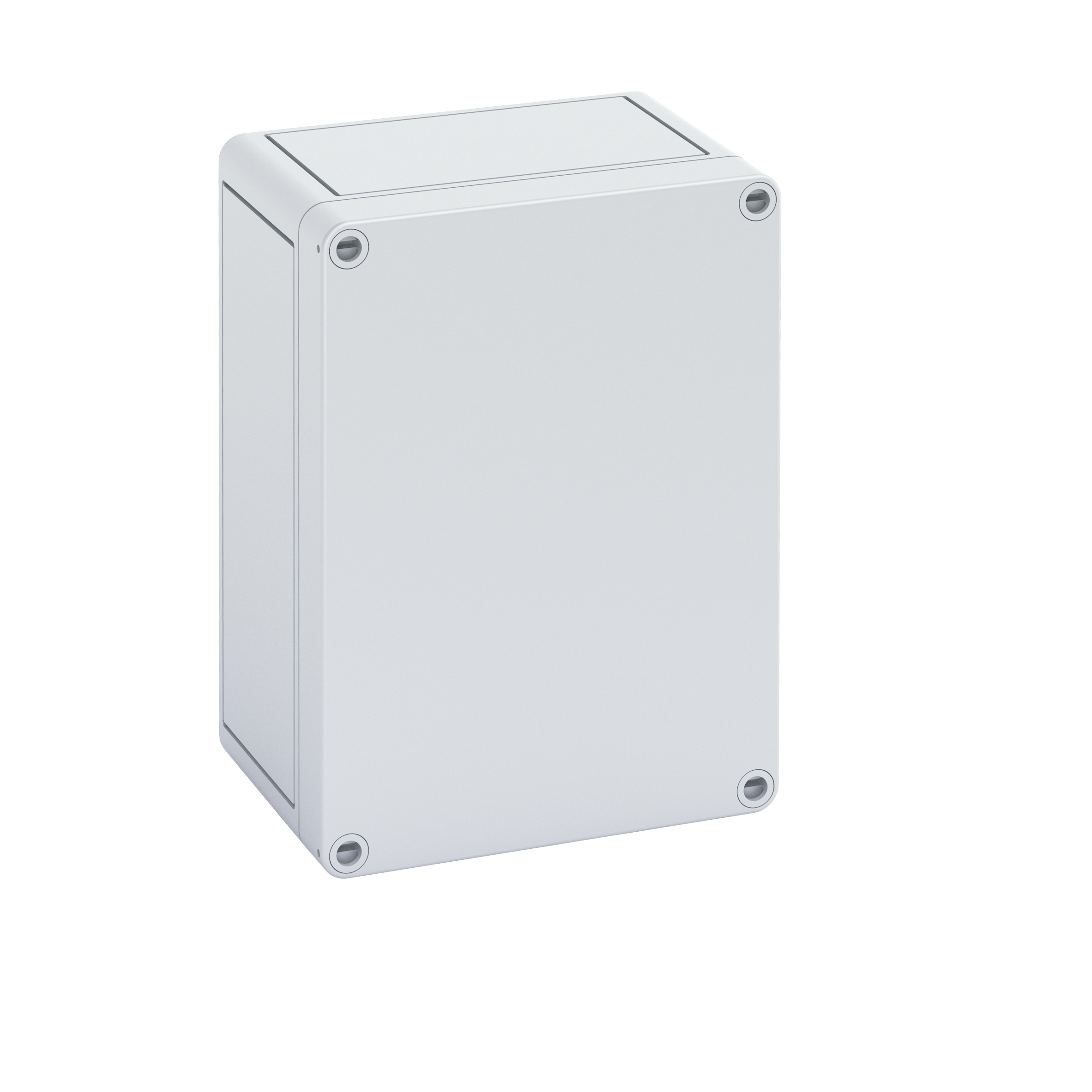 Prázdná skříň, se stupněm krytí IP66, polystyren, Ui=690V AC, Ui=1000V DC, Vnitřní místa pro připevnění, pro standardní instalace ve vnitřním prostoru, Krabice: polystyren, šedá, Víko: polystyren, šedá, hladké bokyRozměry: 180 x 130 x 90 mm