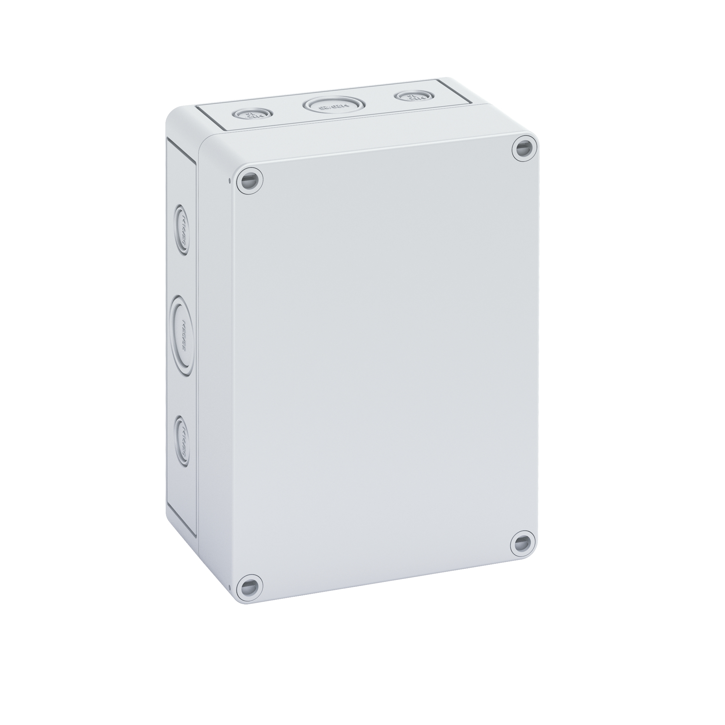 Prázdná skříň, se stupněm krytí IP66, polystyren, Ui=690V AC, Ui=1000V DC, Vnitřní místa pro připevnění, pro standardní instalace ve vnitřním prostoru, Krabice: polystyren, šedá, Víko: polystyren, šedá, Vyrážecí membrány, M12/M16/M20/M25/M32, (14 vývodek z boku)Rozměry: 180 x 130 x 84 mm