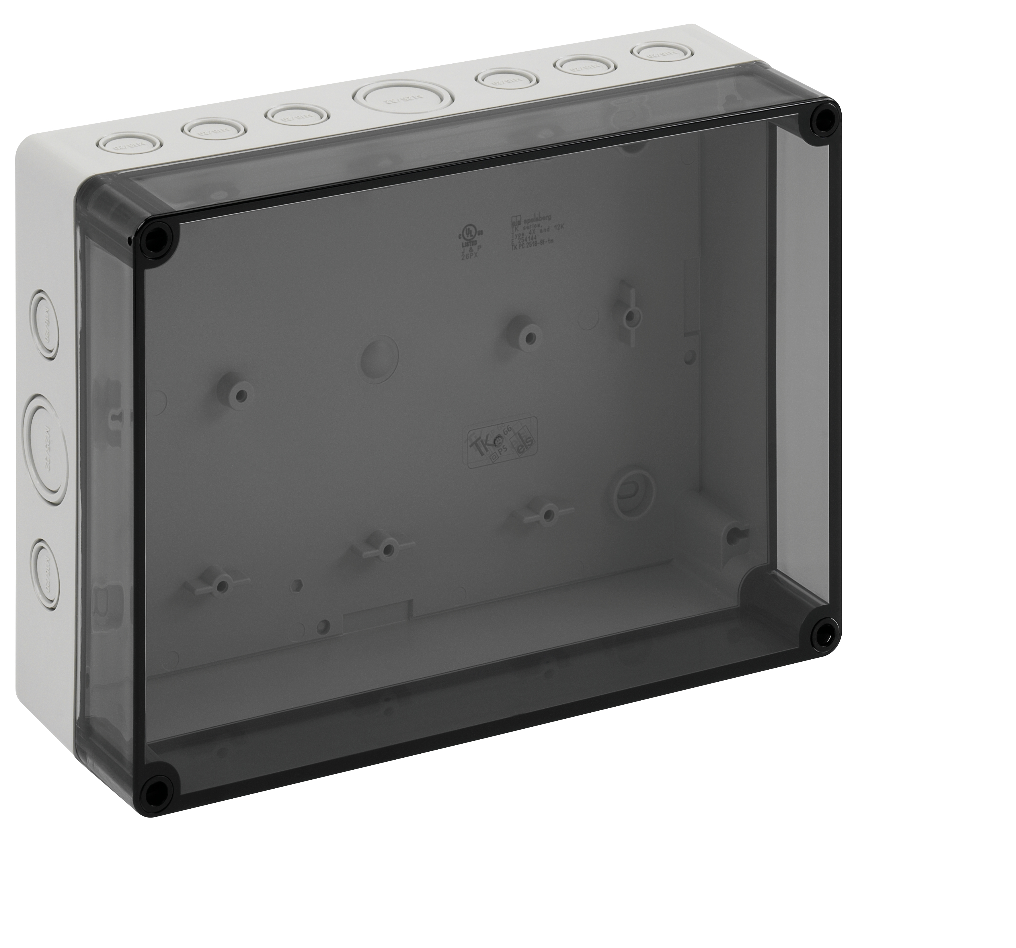 Prázdná skříň, IP66, rázová odolnost IK07, třída ochrany II, Ui 690V AC, 1000V DC TK PS 2518-8f-tm