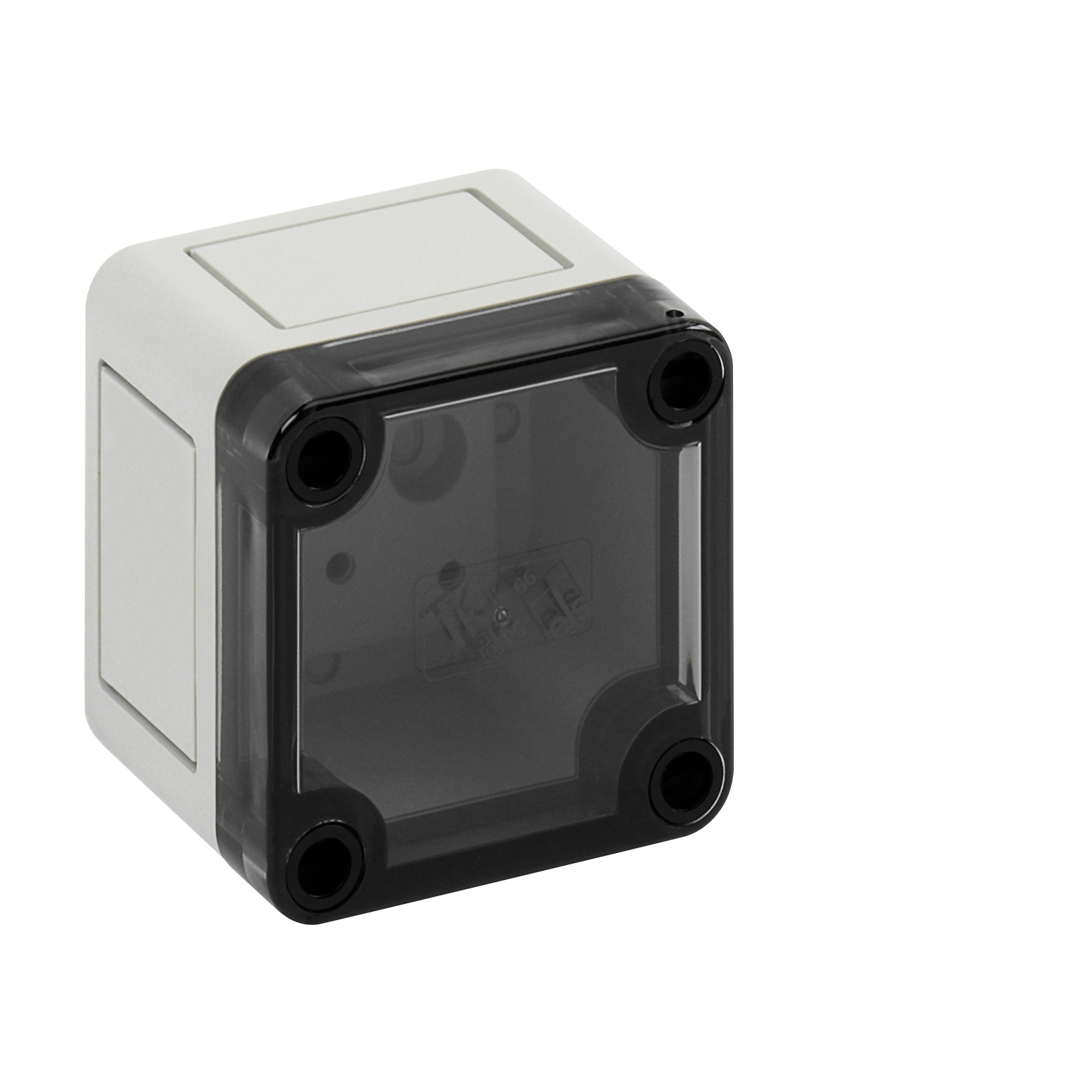 Prázdná skříň, se stupněm krytí IP66, polystyren, Ui=690V AC, Ui=1000V DC, Vnitřní místa pro připevnění, pro standardní instalace ve vnitřním prostoru, Krabice: polystyren, šedá, Víko: polykarbonát, transparentní, hladké bokyRozměry: 65 x 65 x 57 mm