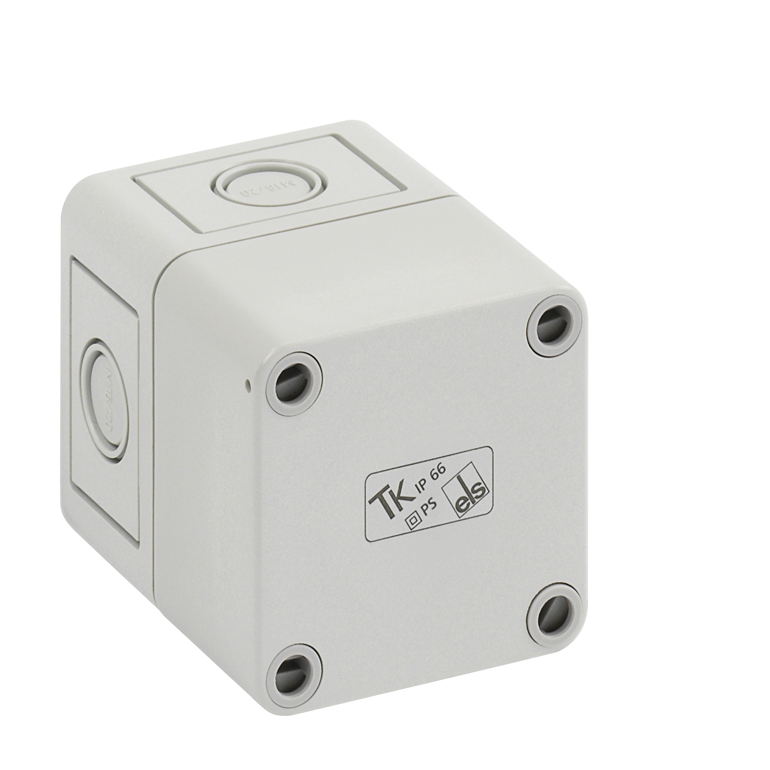 Prázdná skříň, se stupněm krytí IP66, polystyren, Ui=690V AC, Ui=1000V DC, Vnitřní místa pro připevnění, pro standardní instalace ve vnitřním prostoru, Krabice: polystyren, šedá, Víko: polystyren, šedá, Vyrážecí membrány, M16/M20, (4 vývodek z boku)Rozměry: 65 x 65 x 81 mm