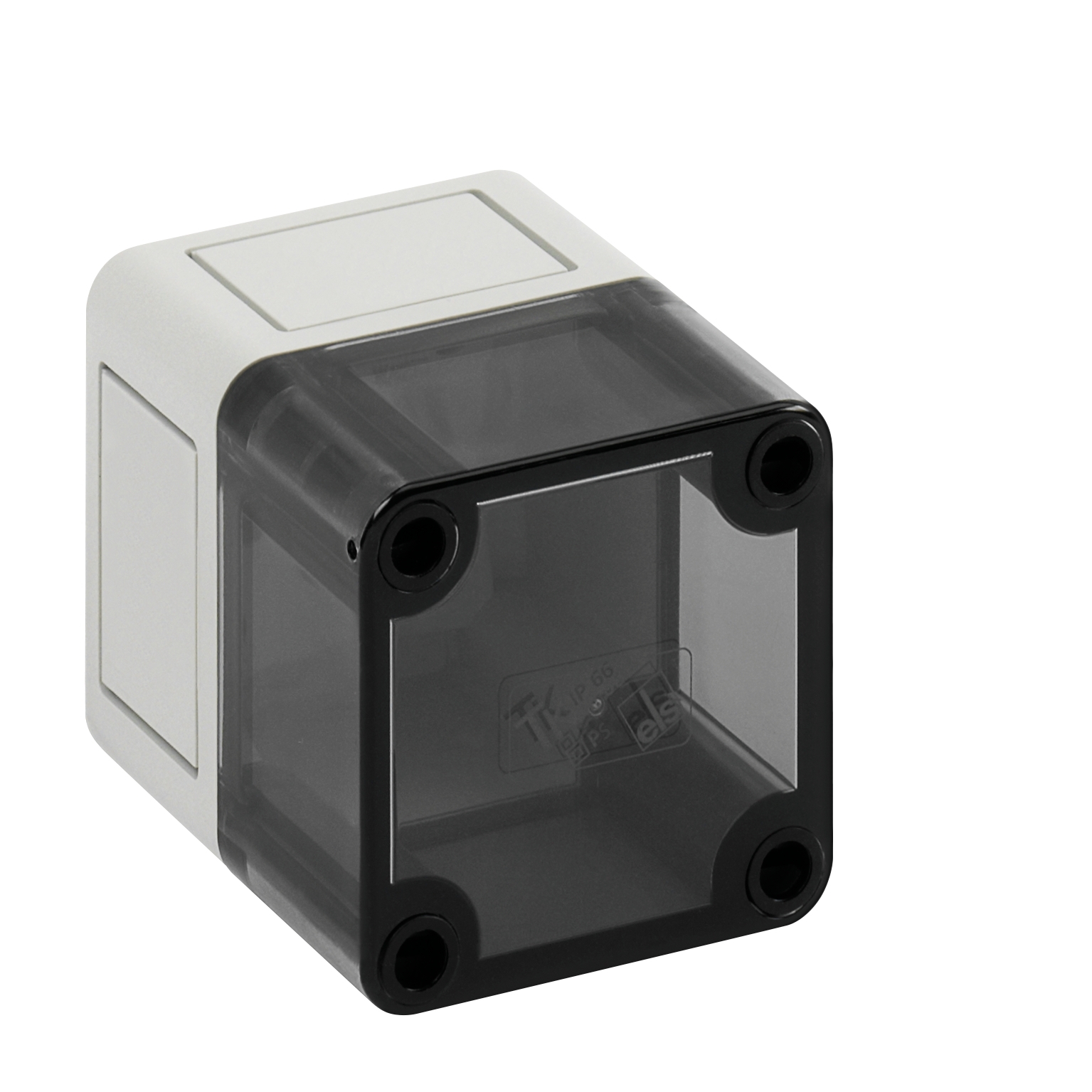Prázdná skříň, se stupněm krytí IP66, polystyren, Ui=690V AC, Ui=1000V DC, Vnitřní místa pro připevnění, pro standardní instalace ve vnitřním prostoru, Krabice: polystyren, šedá, Víko: polykarbonát, transparentní, hladké bokyRozměry: 65 x 65 x 81 mm