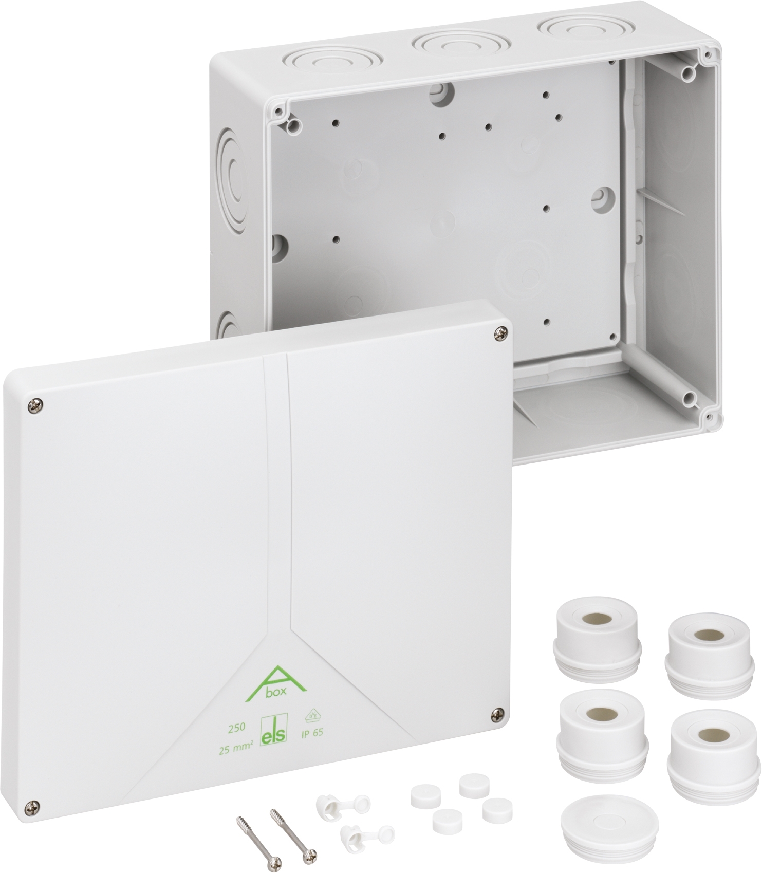 Rozbočovací krabice, IP54/IP65 , max. průřez vodiče 25mm2, rázová odolnost IK07, třída ochrany II, Ui 690V AC, VDE ABOX 250-prázdný