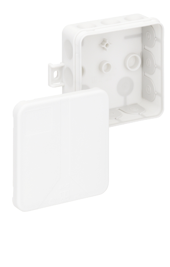 Rozbočovací krabice, se stupněm krytí IP55, Jmenovitý průřez 2,5 mm2, Ui=400 V AC, Certifikováno VDE (DIN EN 60670-1/-22 (VDE 0606-1/-22)), Samotěsnicí měkká přívodní membrána, Rozsah těsnění 2 - 14 mm2 (2 prolis ze zadu, 12 vývodek z boku), Vnější místa pro připevnění, pro standardní instalace ve vnitřním prostoru, bílá, bez svorekRozměry: 85 x 85 x 37 mm