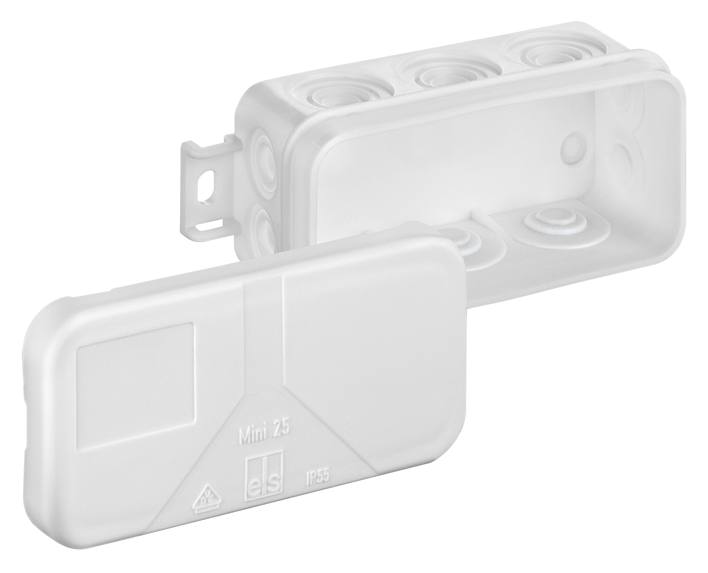 Rozbočovací krabice, IP55, max. průřez vodiče 2,5mm2, rázová odolnost IK07, třída ochrany II, Ui 400V AC, VDE Mini 25-L/w - BÍLÁ