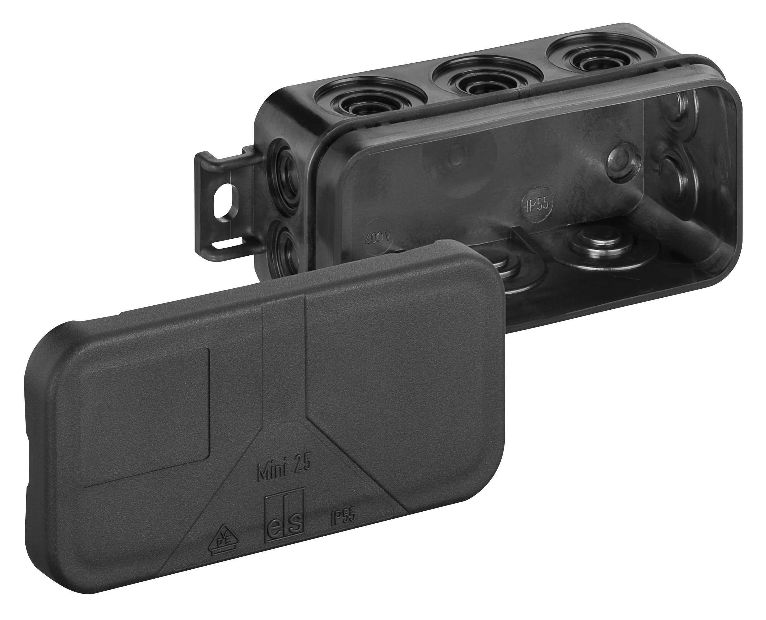 Rozbočovací krabice, IP55, max. průřez vodiče 2,5mm2, rázová odolnost IK07, třída ochrany II, Ui 400V AC, VDE Mini 25-L/sw - ČERNÁ