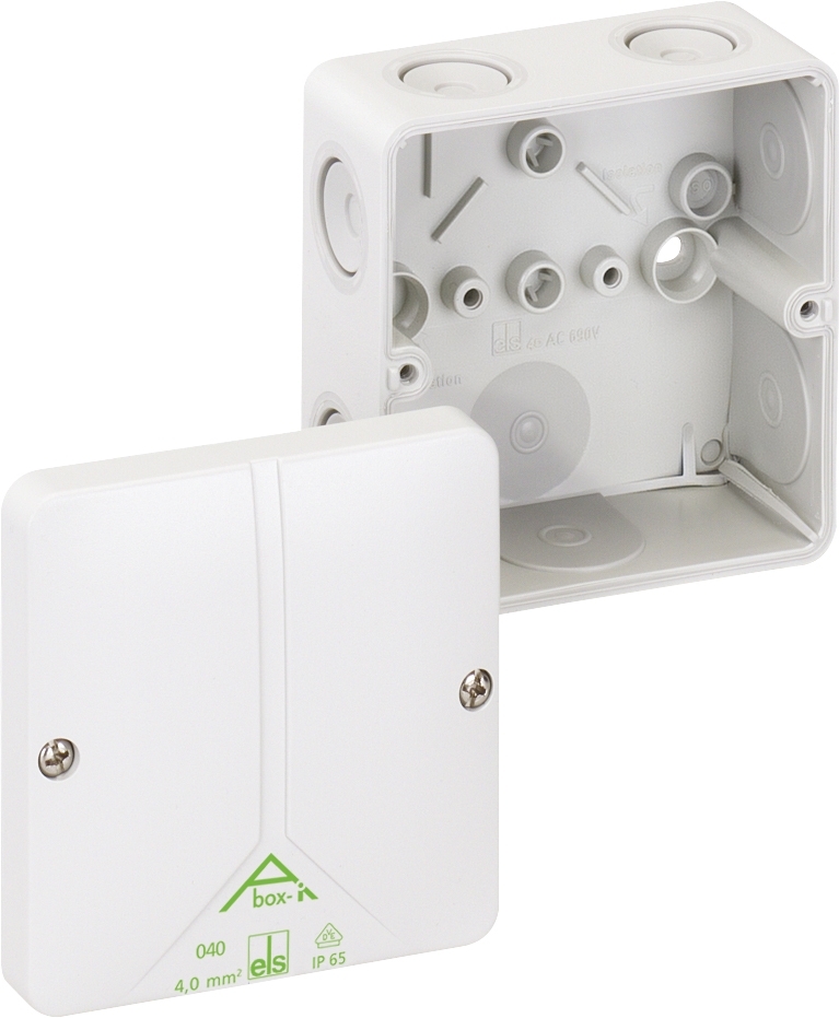 Rozbočovací krabice, IP65, max. 4mm2, rázová odolnost IK08, třída ochrany II, Ui 690V AC, DLG, DNV, VDE Abox-i 040-L