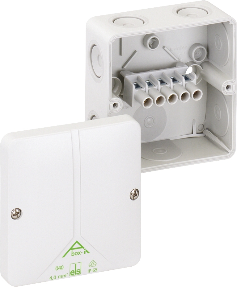 Rozbočovací krabice, IP65, max. 4mm2, rázová odolnost IK08, třída ochrany II, Ui 690V AC, DLG, DNV, VDE Abox-i 040-4