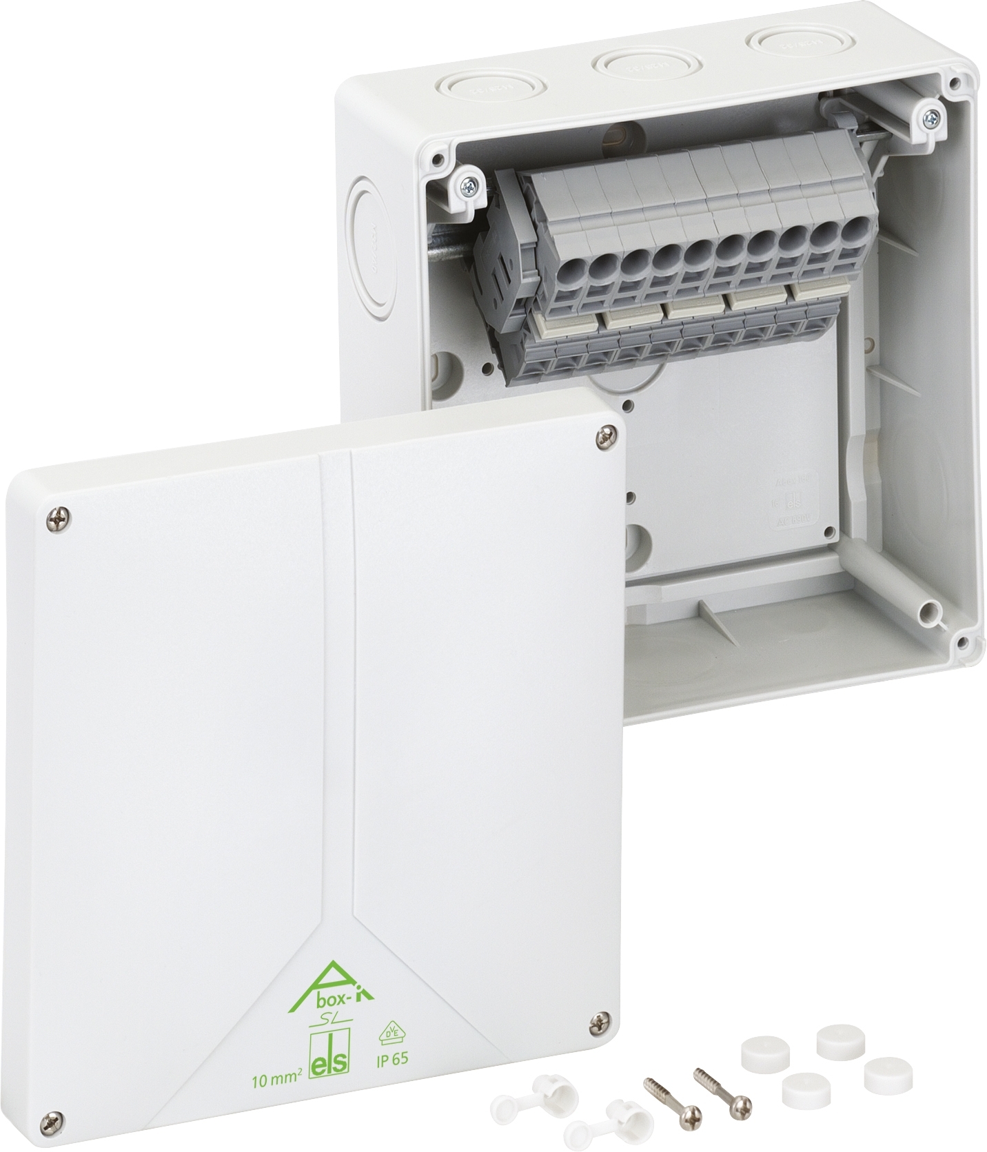 Rozbočovací krabice, IP65, max. průřez vodiče 10mm2, rázová odolnost IK08, třída ochrany II, Ui 690V AC, DLG, VDE Abox-i SL-10