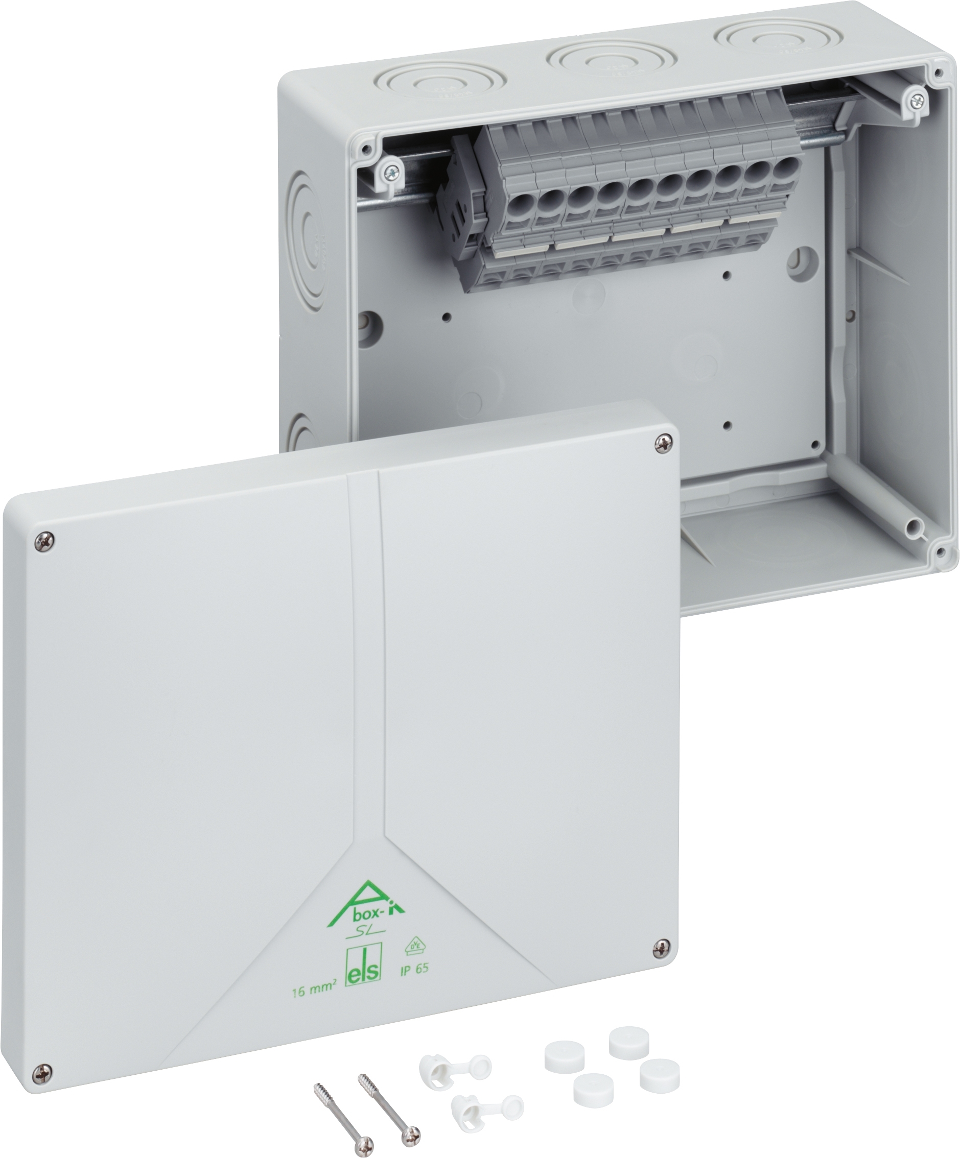 Rozbočovací krabice, IP65, max. průřez vodiče 16mm2, rázová odolnost IK08, třída ochrany II, Ui 690V AC, DLG, VDE Abox-i SL-16