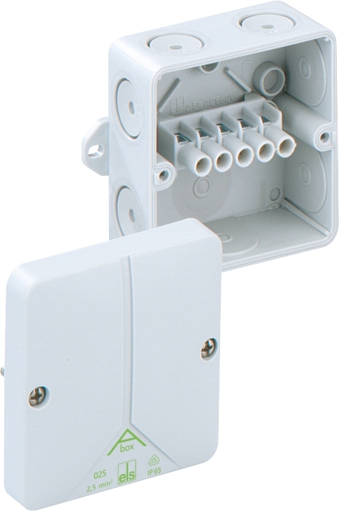 Rozbočovací krabice, IP65, max. průřez vodiče 2,5mm2, rázová odolnost IK07, třída ochrany II, Ui 690V AC, VDE ABOX 025-2,5mm2AB