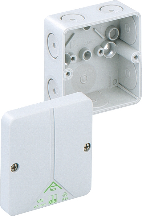 Rozbočovací krabice, IP65, max. průřez vodiče 2,5mm2, rázová odolnost IK07, třída ochrany II, Un 690V AC, VDE ABOX 025