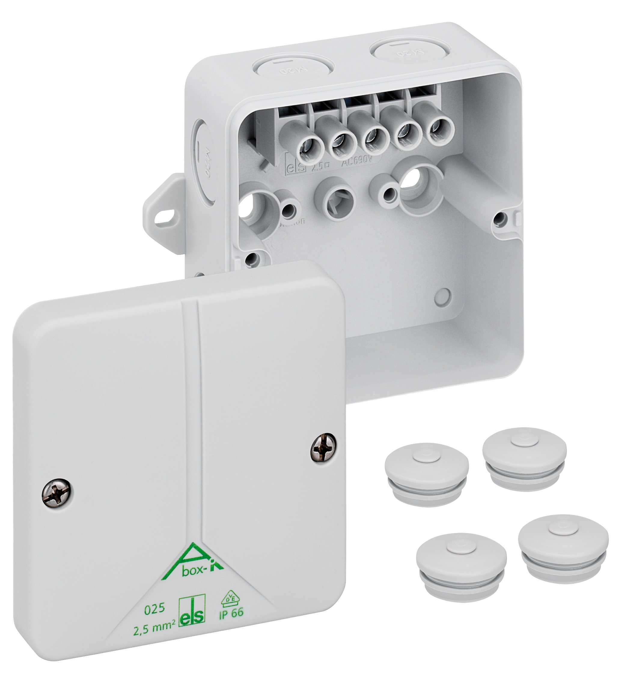 Rozbočovací krabice, IP66, max. 2,5mm2, rázová odolnost IK08, třída ochrany II, Ui 690V AC, DLG, DNV, VDE Abox-i m 025 AB-2,5mm2