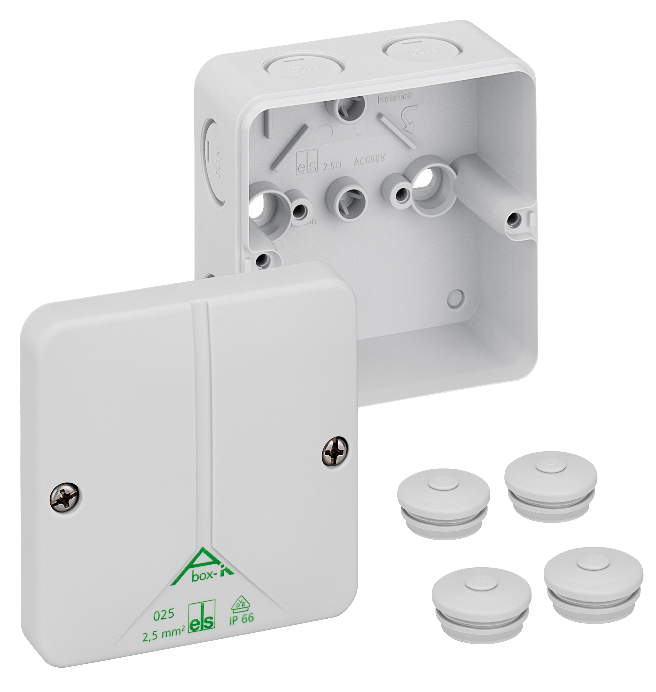 Rozbočovací krabice, IP66, max. 2,5mm2, rázová odolnost IK08, třída ochrany II, Ui 690V AC, DLG, DNV, VDE Abox-i m 025-L