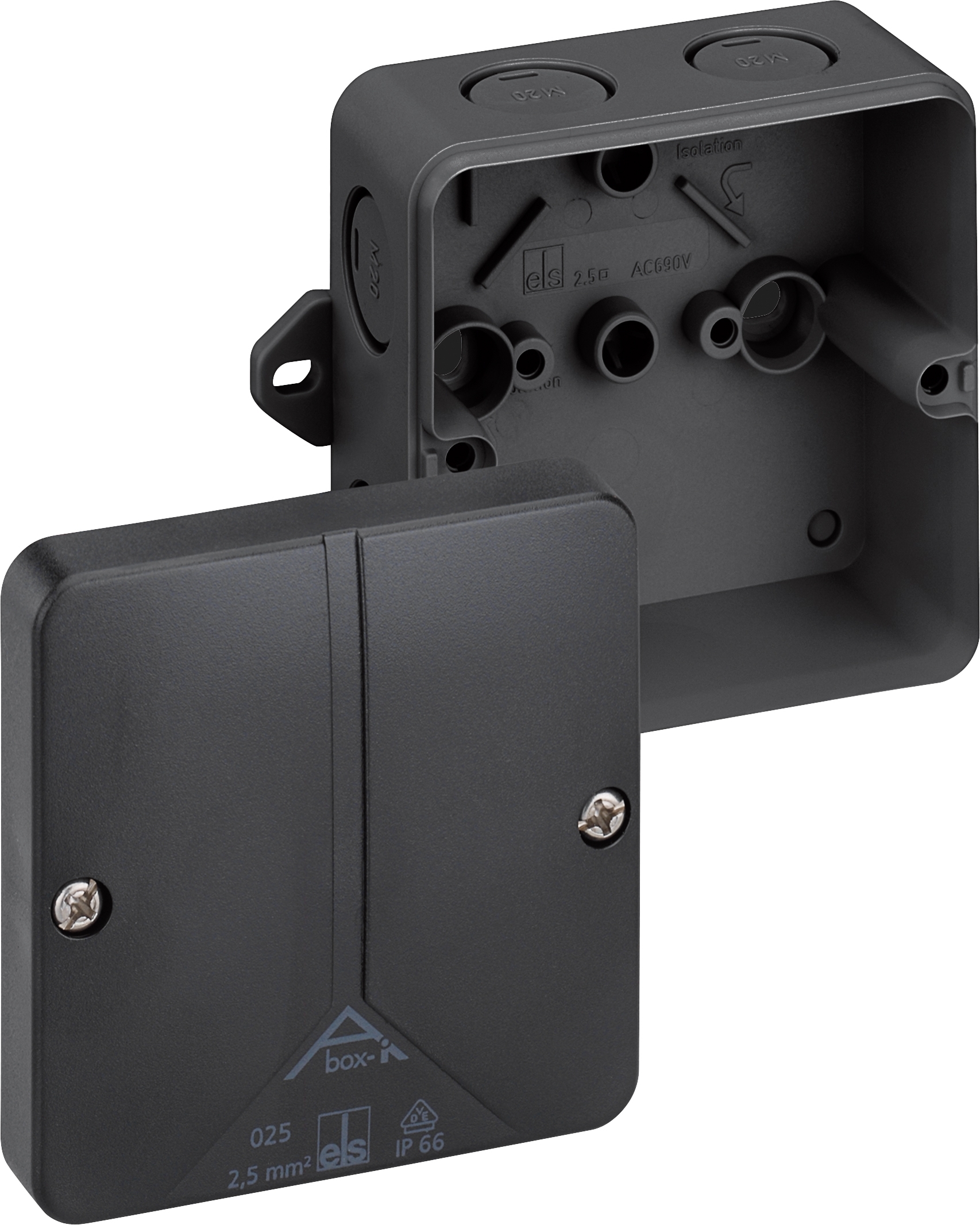 Rozbočovací krabice, IP66, max. 2,5mm2, rázová odolnost IK08, třída ochrany II, Ui 690V AC, DLG, DNV, VDE Abox-i m 025 AB-L/sw