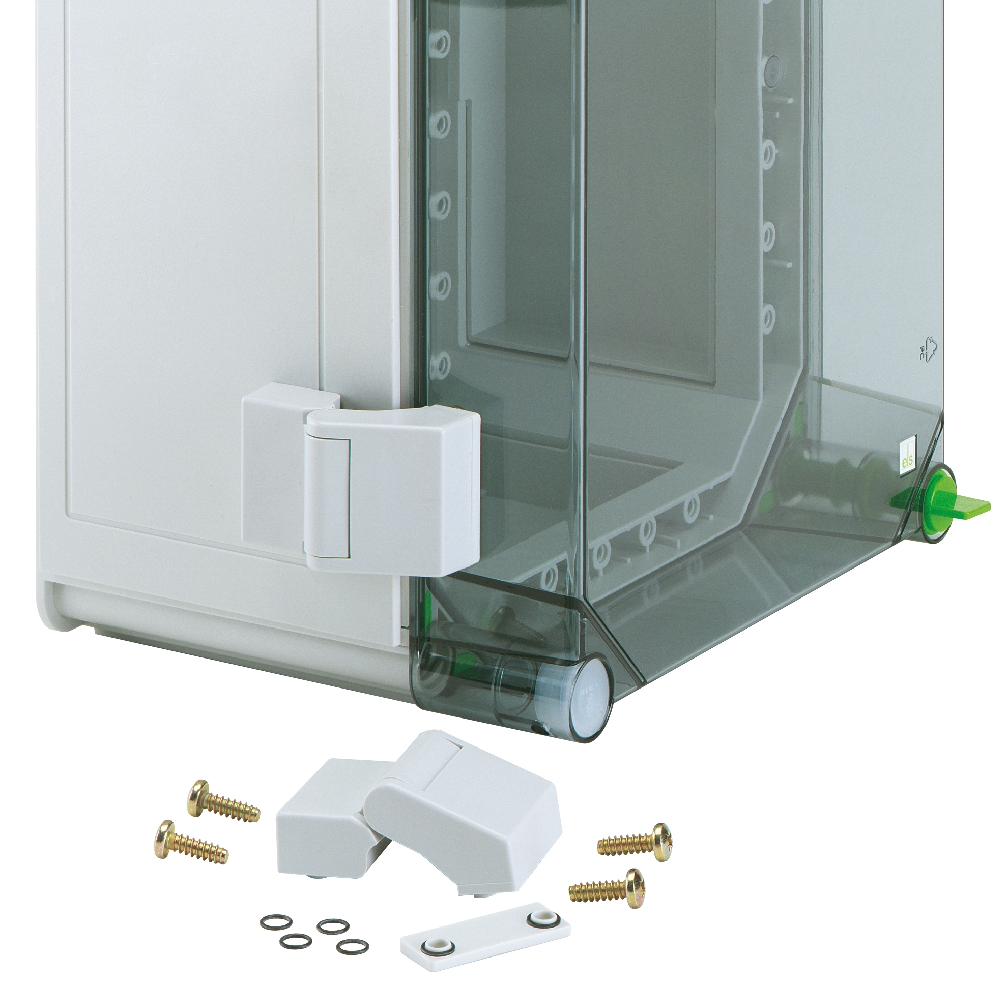 Vnější závěs, pro přestavění víka skříně na vyklápěcí dveře, pro pouzdro GTi, Montáž se provádí na vnější straně příruby, Sada = 2 ksRozměry: 40 x 30 x 60,5 mm