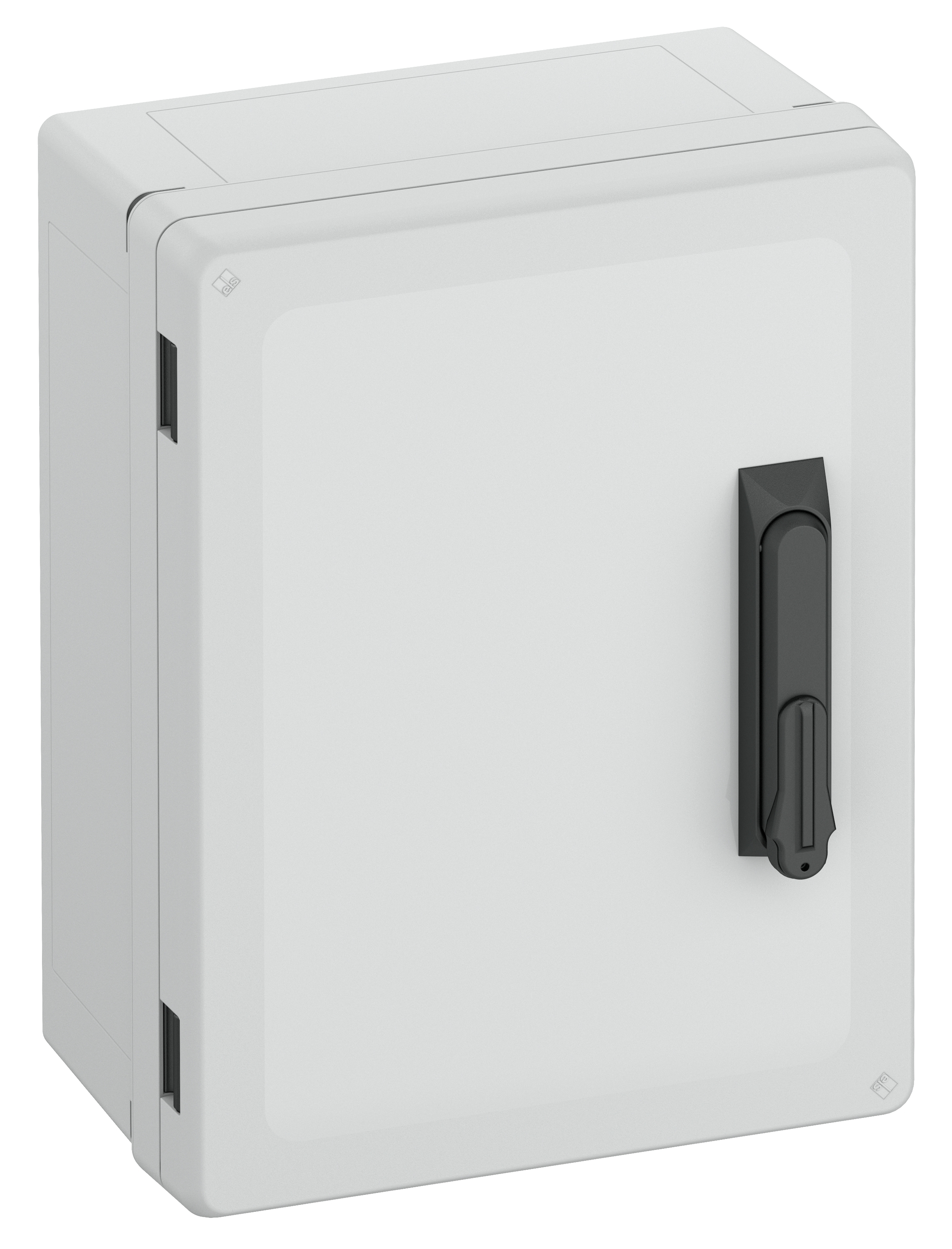 Skříňový rozvaděč, vhodný pro instalaci v zátěžovém prostředí a v nechráněném venkovním prostředí, krabice a rám: polykarbonát vyztužený skleněnými vlákny, šedý, podobný RAL 7035, dvířka: Polykarbonát.půlválcová vložka dle DIN 18252, s šedými dvířkyRozměry: 300 x 400 x 180 mm