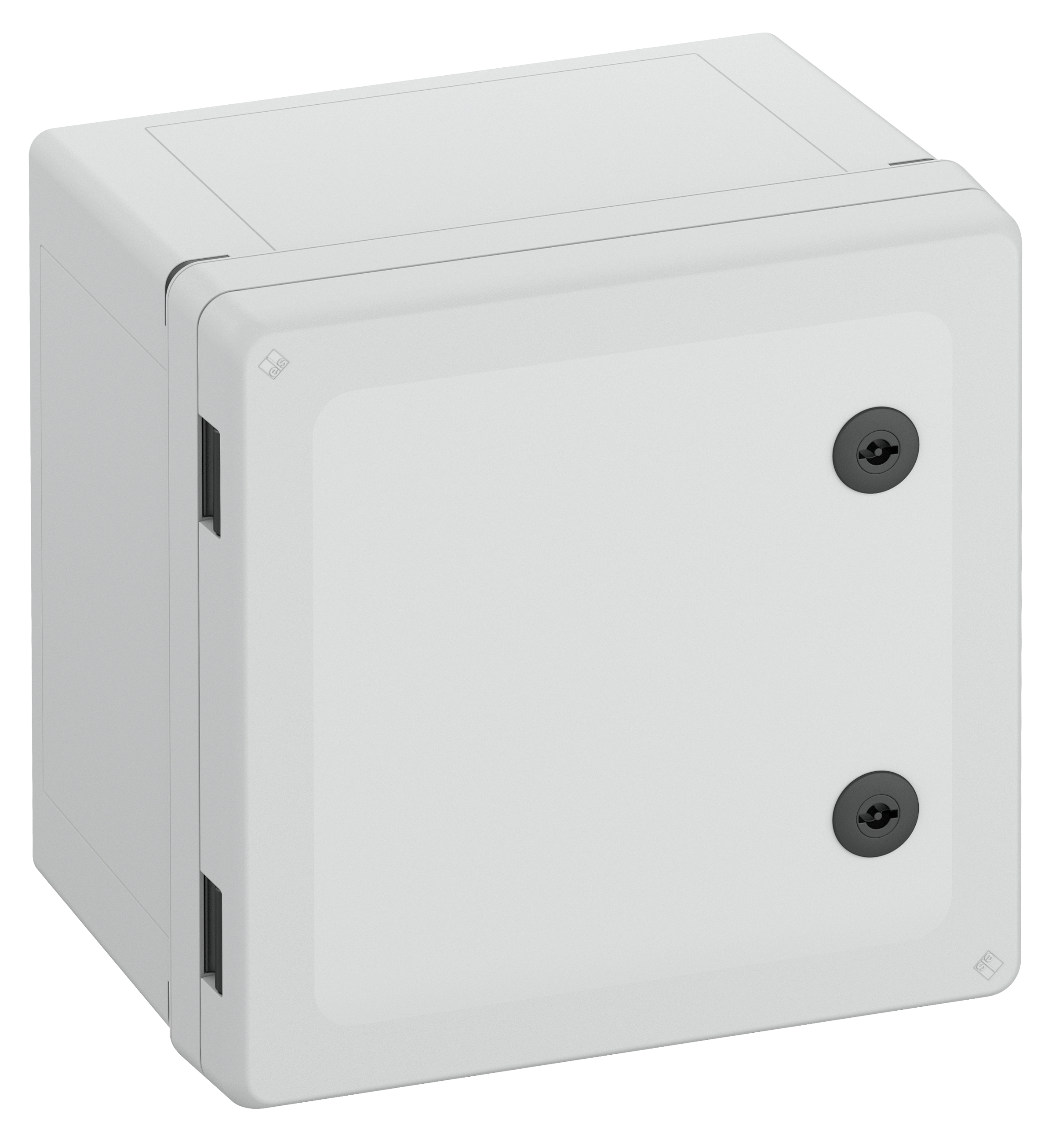 Skříňový rozvaděč, vhodný pro instalaci v zátěžovém prostředí a v nechráněném venkovním prostředí, krabice a rám: polykarbonát vyztužený skleněnými vlákny, šedý, podobný RAL 7035, dvířka: Polykarbonát.rozvaděčové zamykání 3 mm2dvojzub (možnost výměny) podle DIN 43668, s šedými dvířkyRozměry: 300 x 300 x 226 mm