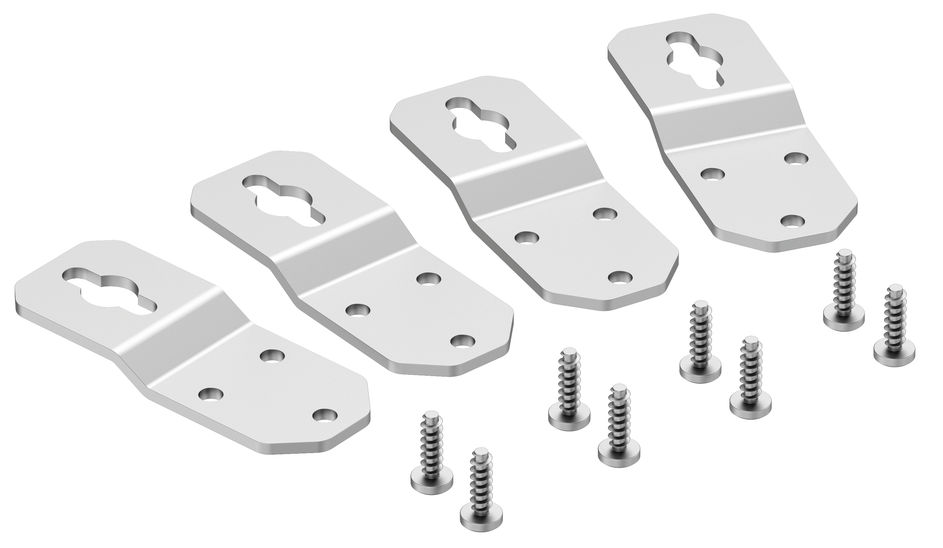 Sada vnějších úchytů z ušlechtilé oceli V4A, možná montáž v úhlu 0° nebo 90°, sada = 4 ks, Vzdálenost od stěny 10 mm2ozměry: 35 x 90 x 8,5 mm